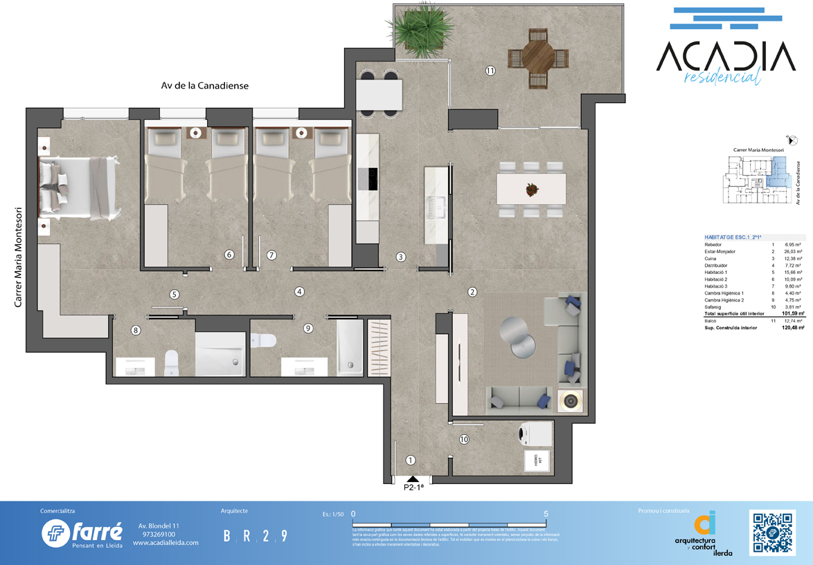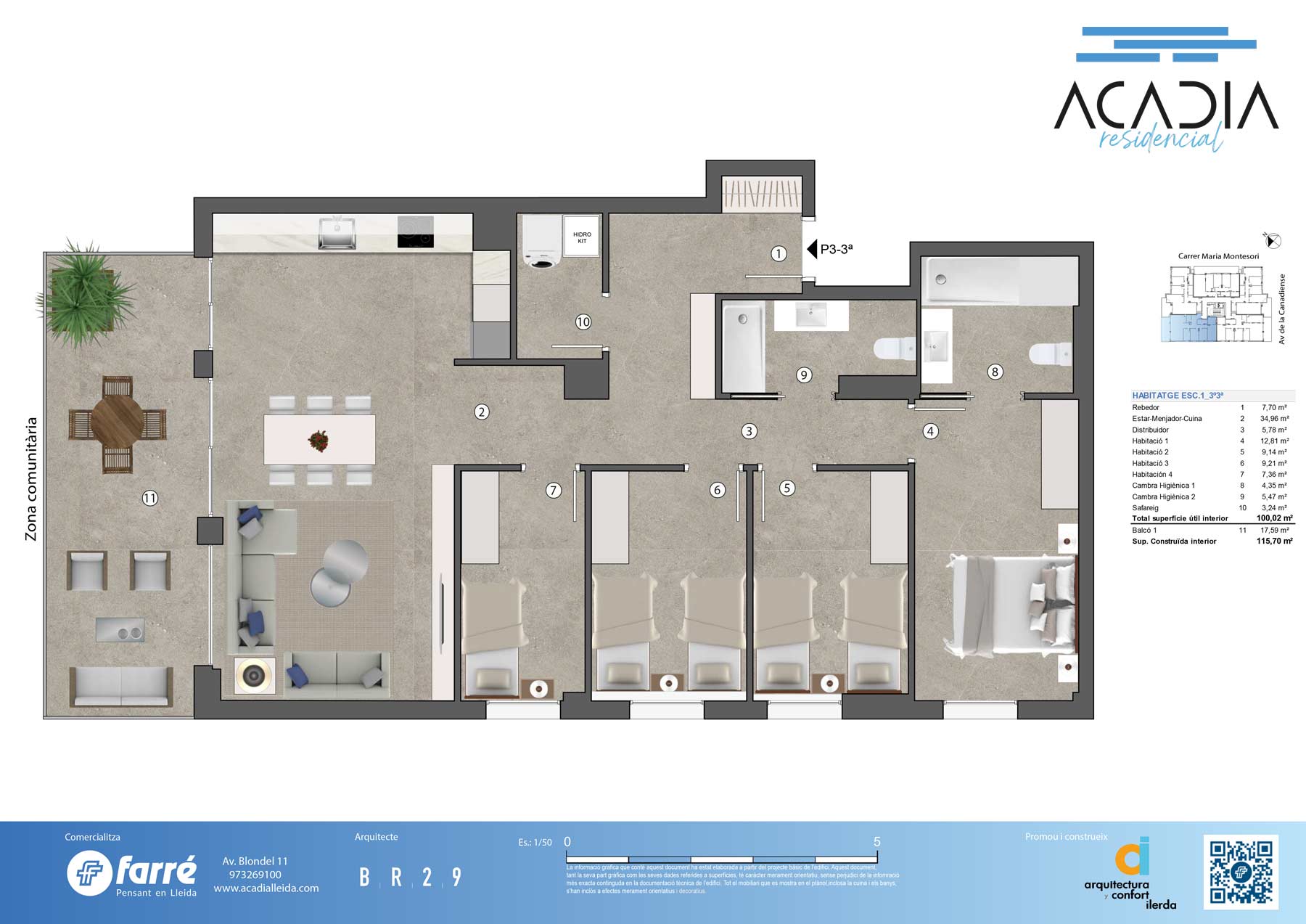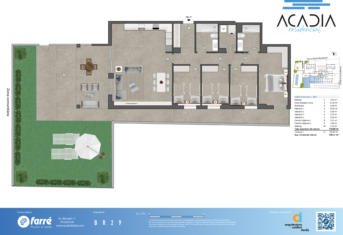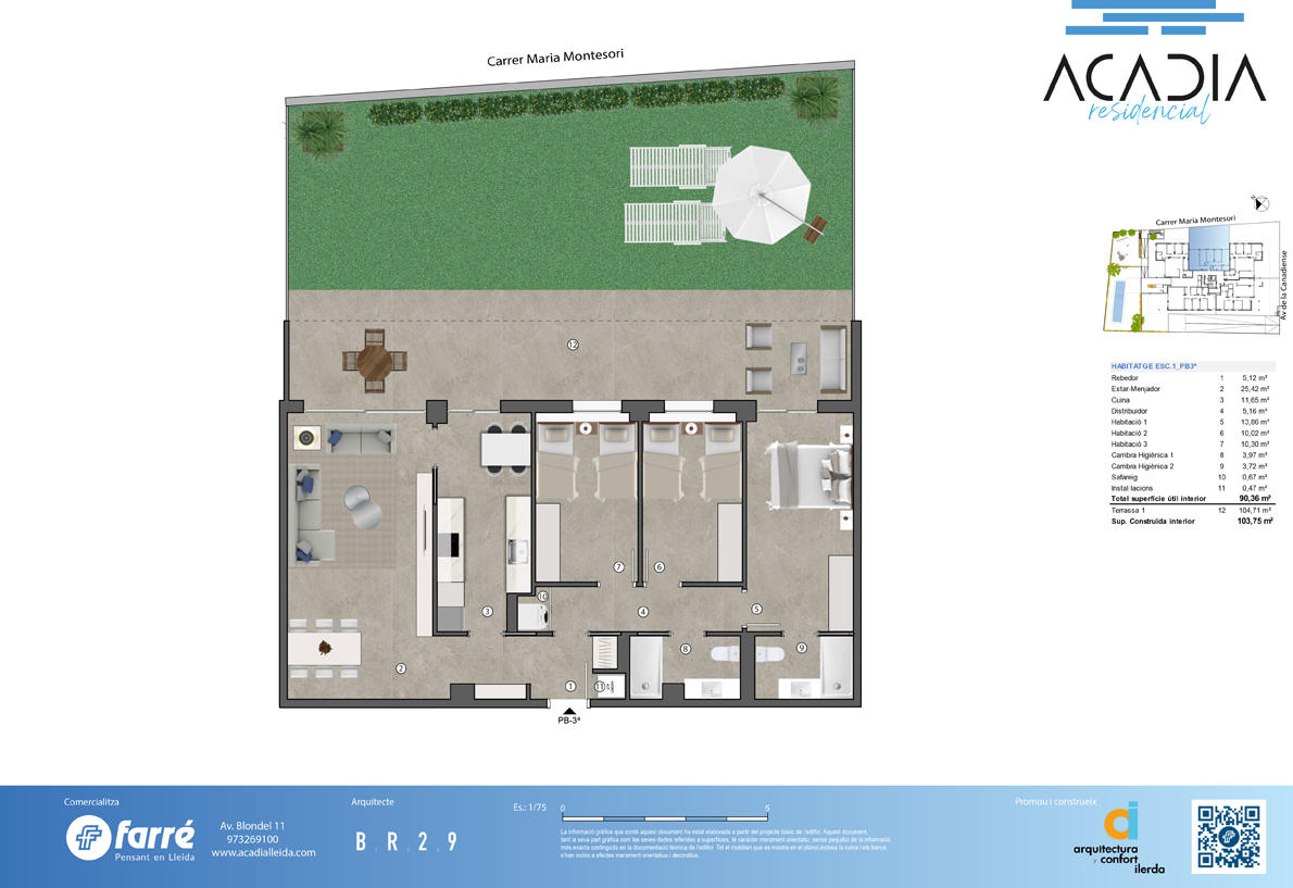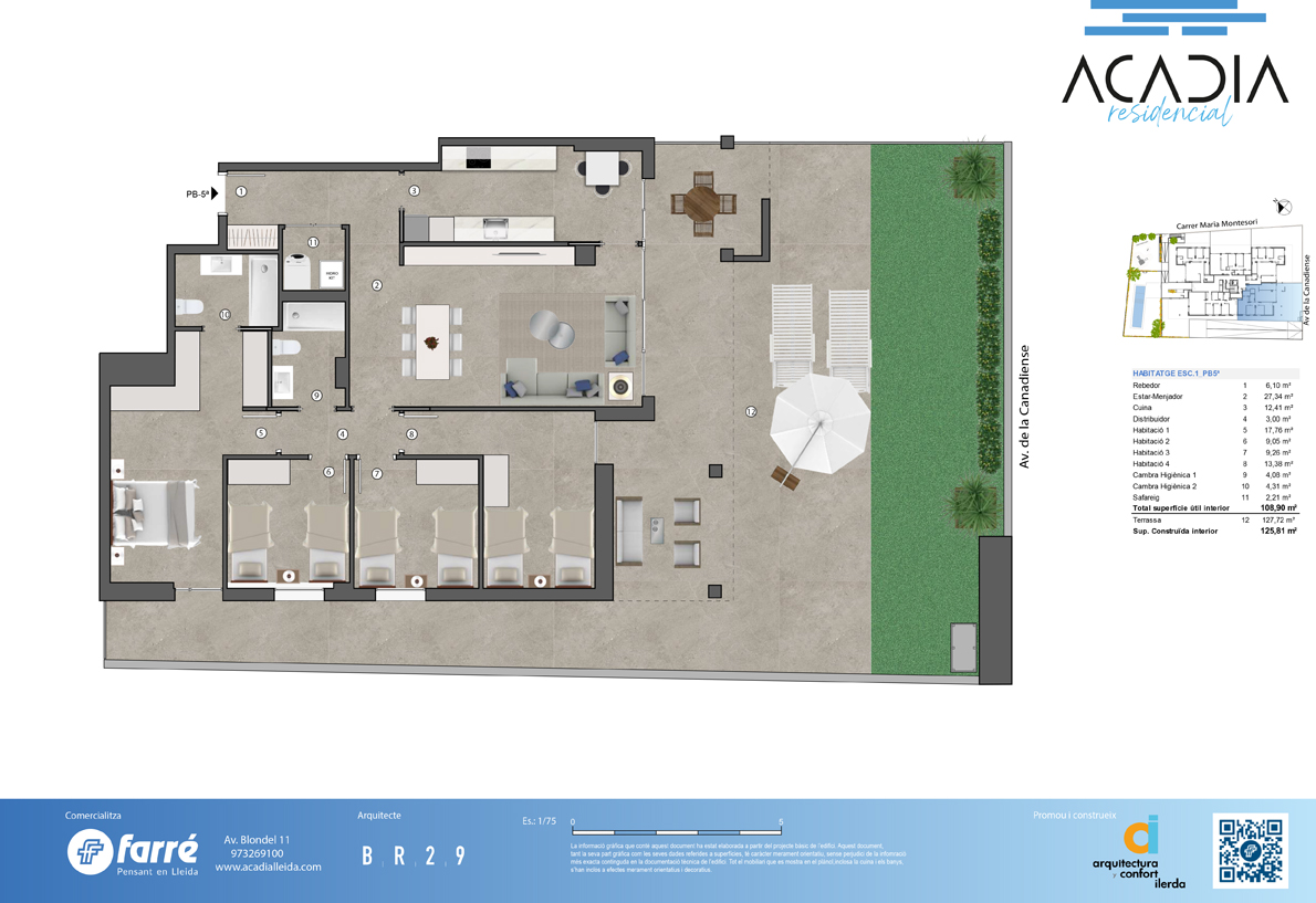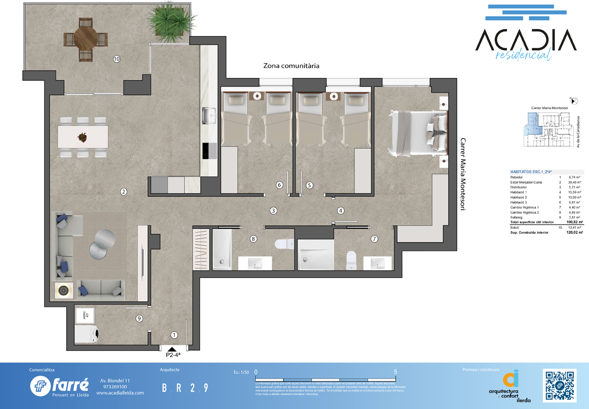 Acadia Residencial es una nueva promoción de 28 viviendas de 3 y 4 dormitorios situada en el Parc de l’Aigua de Lleida, una zona en crecimiento y rodeada de naturaleza.
