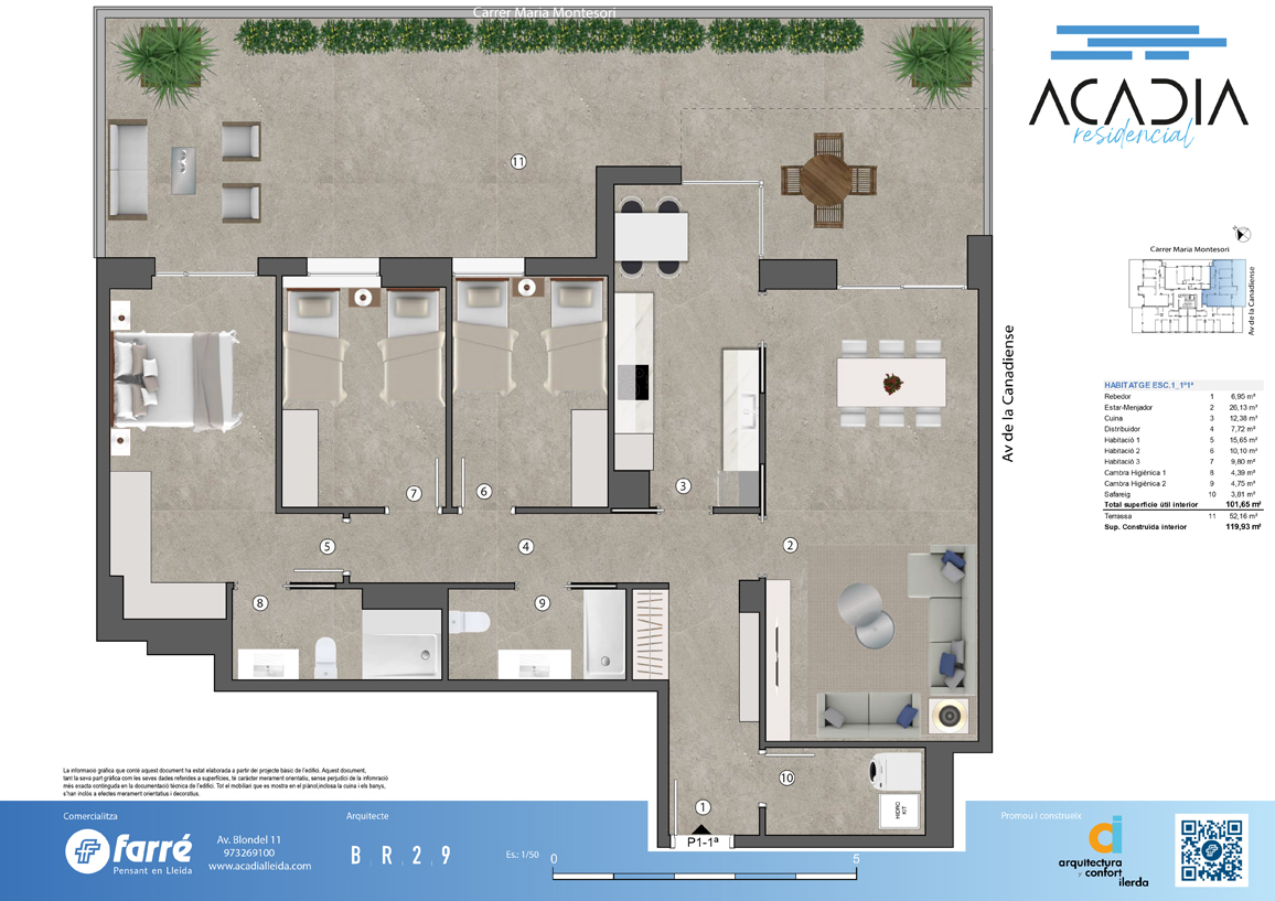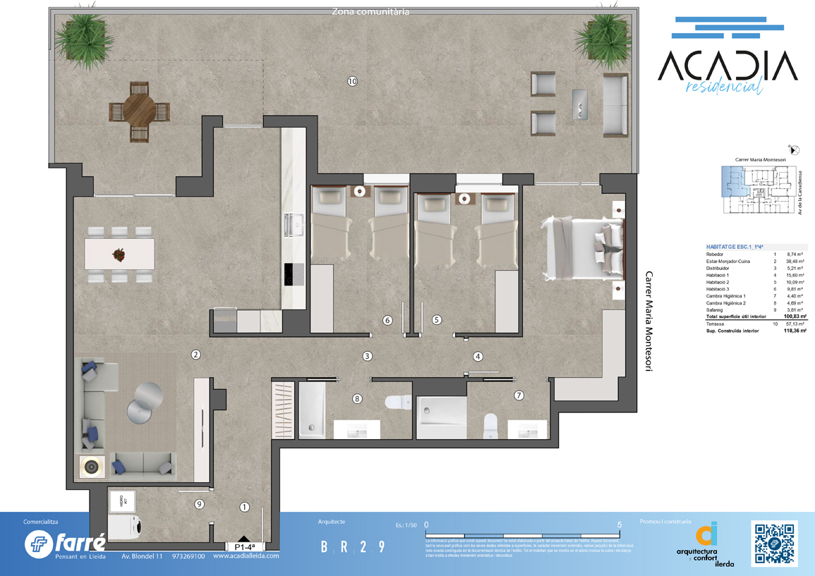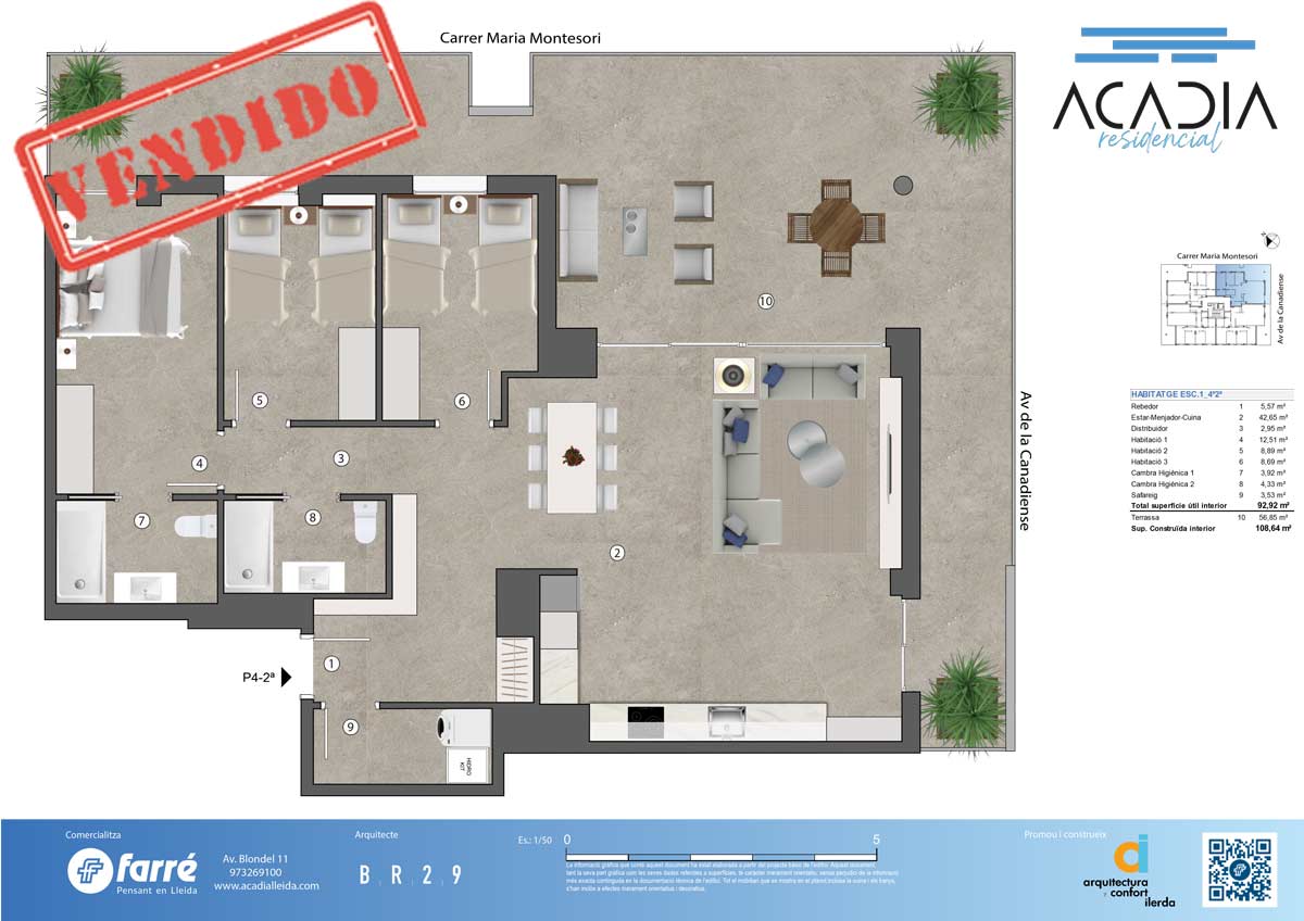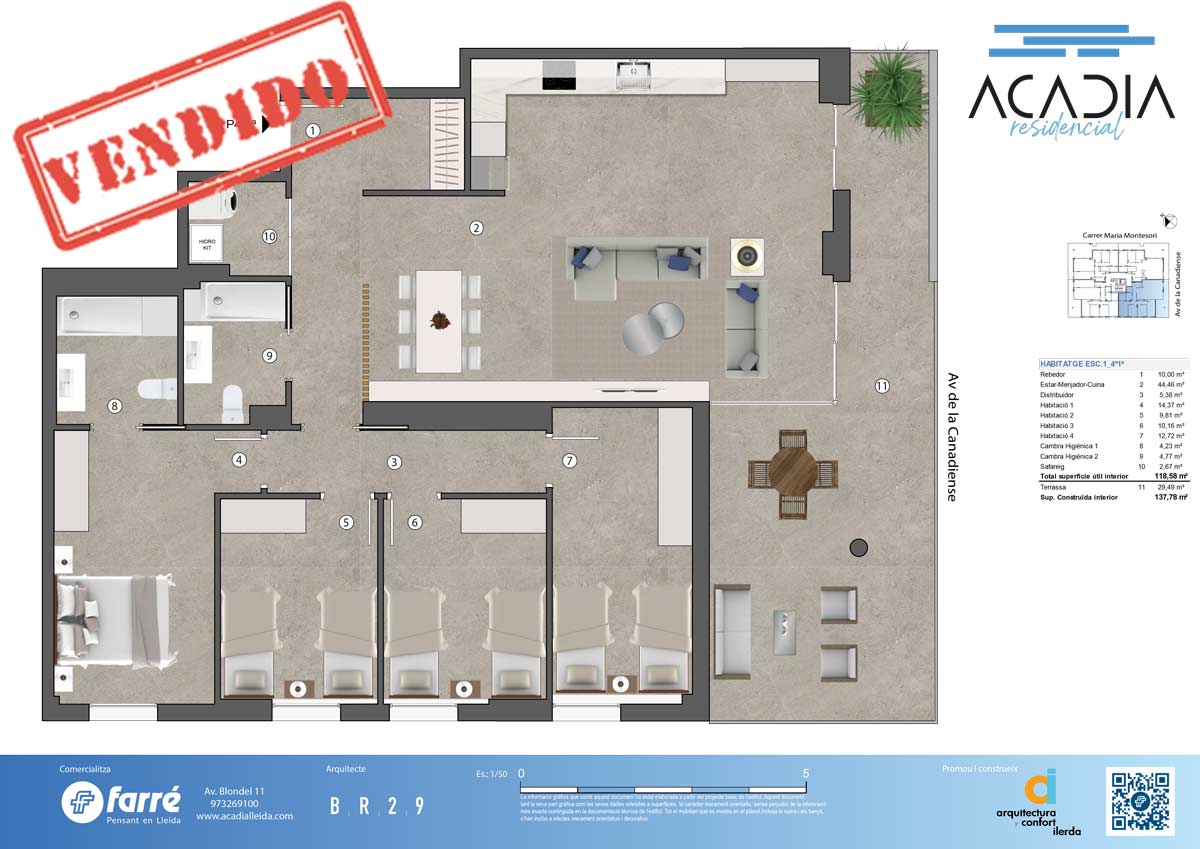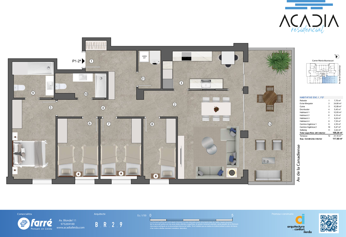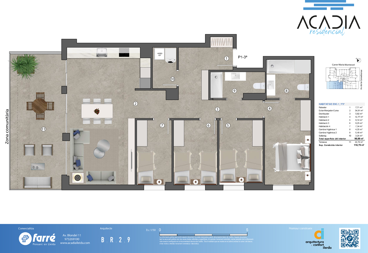 Acadia Residencial es una nueva promoción de 28 viviendas de 3 y 4 dormitorios situada en el Parc de l’Aigua de Lleida, una zona en crecimiento y rodeada de naturaleza.