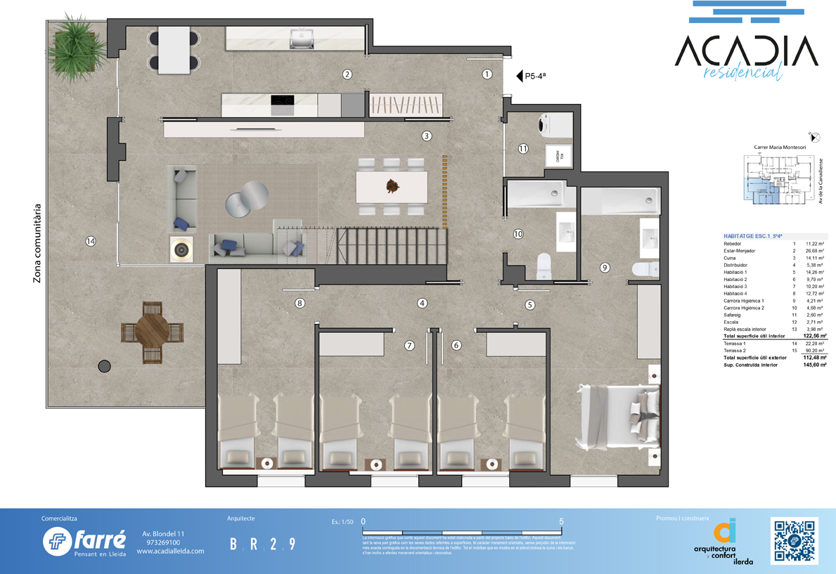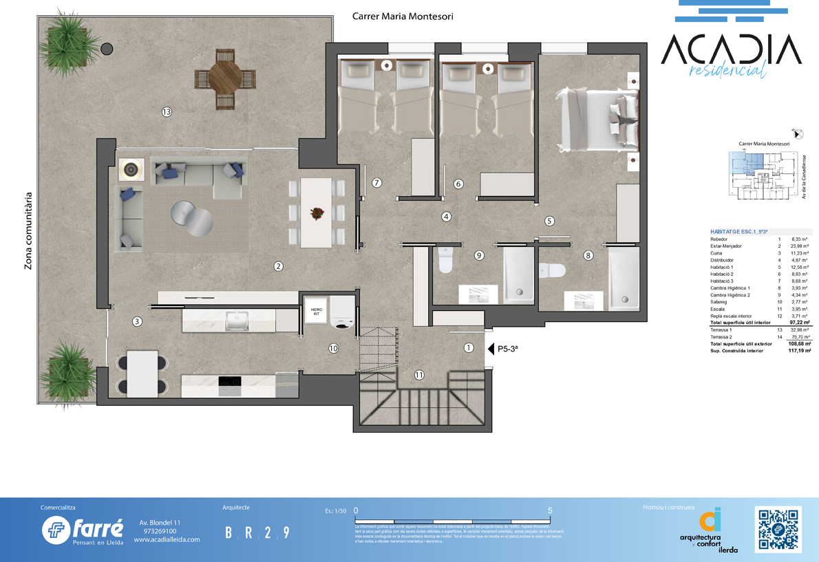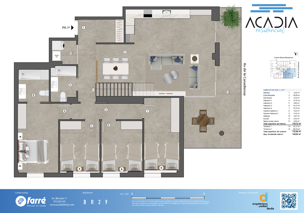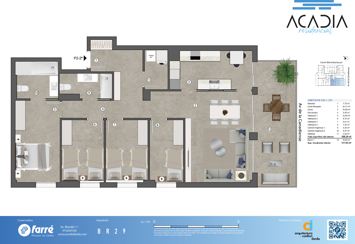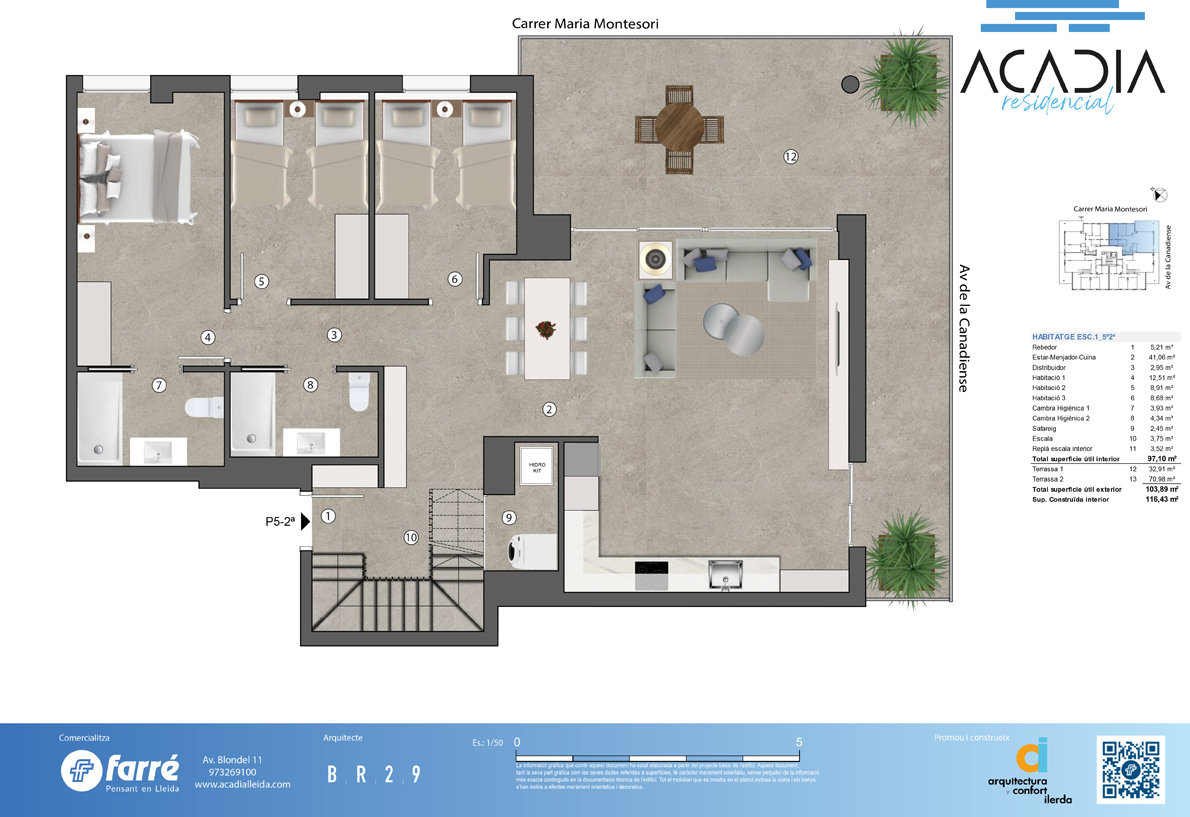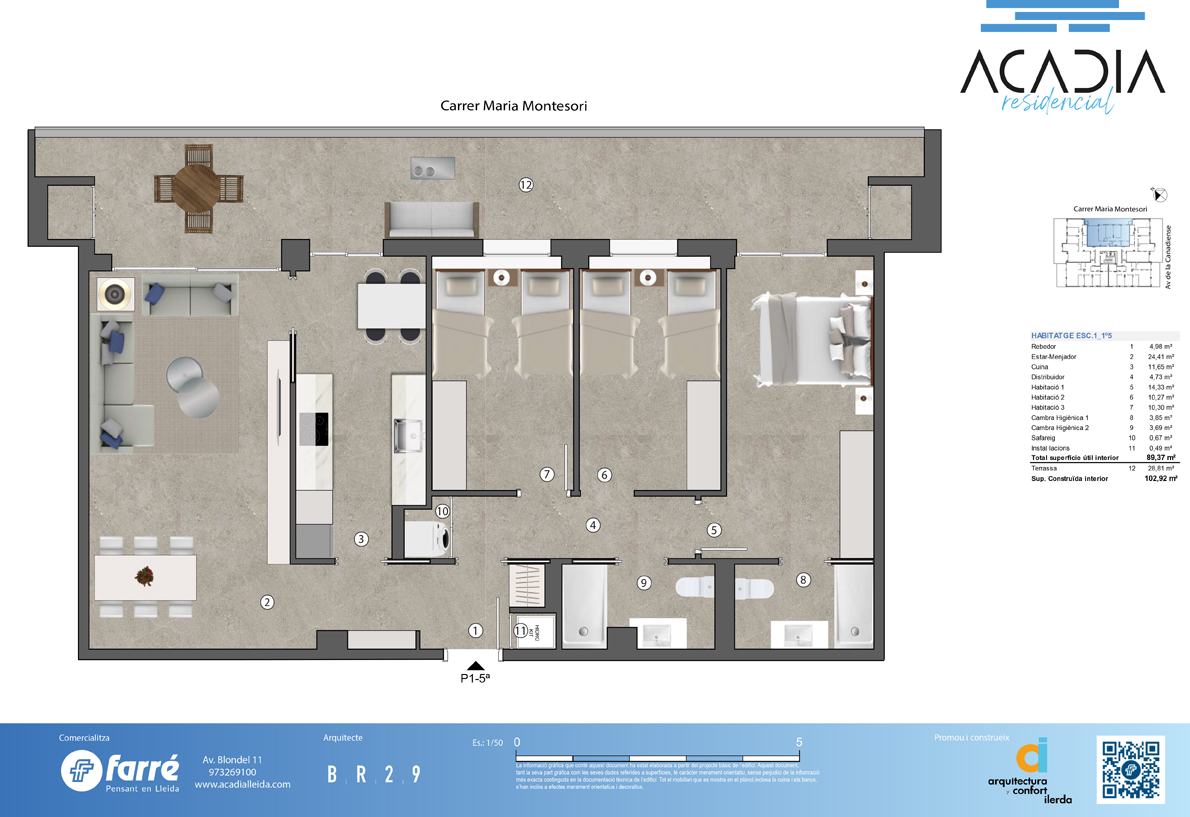 Acadia Residencial es una nueva promoción de 28 viviendas de 3 y 4 dormitorios situada en el Parc de l’Aigua de Lleida, una zona en crecimiento y rodeada de naturaleza.