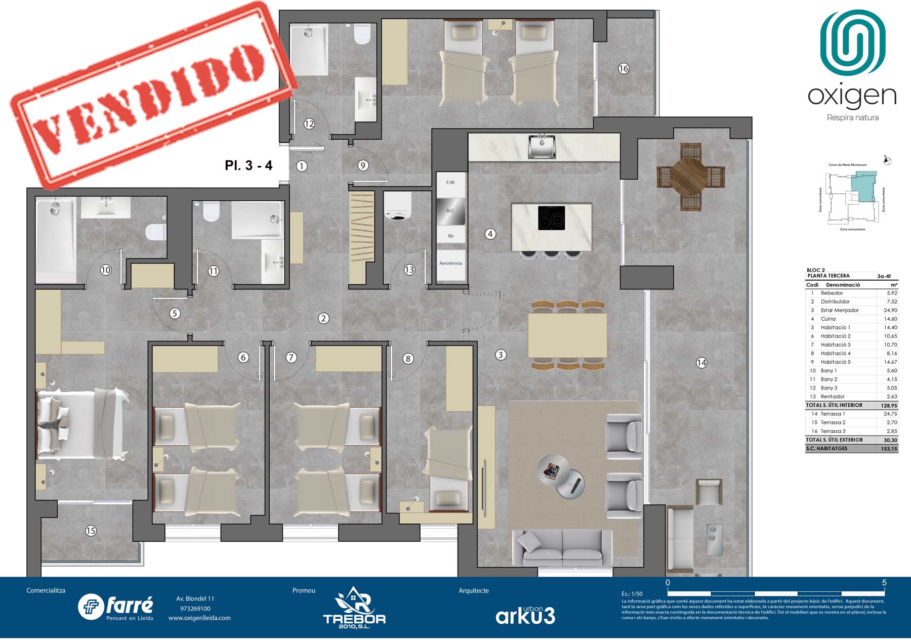 - Sup. construida: 153,15 m²